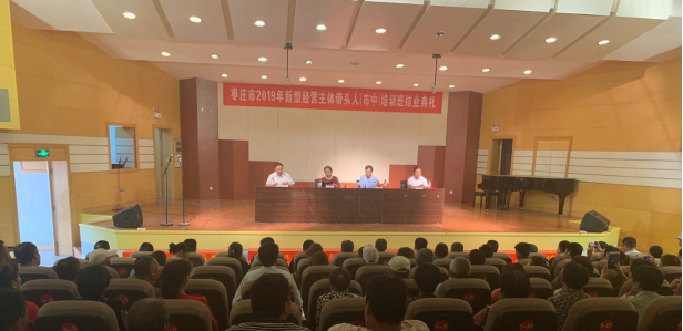 9月11日下午,枣庄市2019年新型经营主体带头人培训班结业典礼在音乐楼报告厅举行。枣庄市农业农村局贾鹏章局长、校党委委员、副校长、李丽清、beat365唯一官方网站院长张宗海、食品与药品学院副院长张立华出席结业典礼并讲话。
