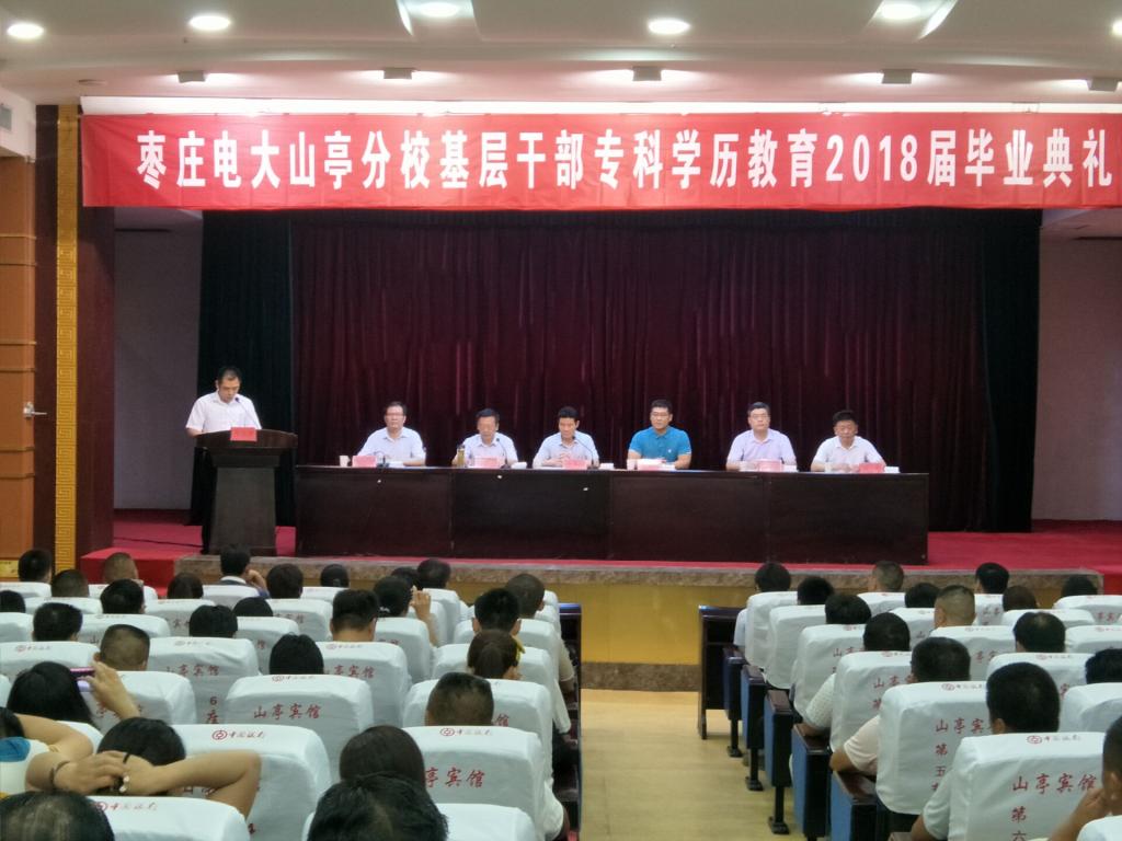 7月12日上午,枣庄电大山亭分校基层干部专科学历教育2018届毕业典礼在山亭宾馆隆重举行。枣庄市委组织部远教中心主任苑永利、beat365唯一官方网站beat365唯一官方网站副院长王奉涛、区委组织部区委党校有关领导出席,区委党校全体教职工及109名学员共同参加了本次典礼。典礼由区委党校党委书记、常务副校长满孝东主持。