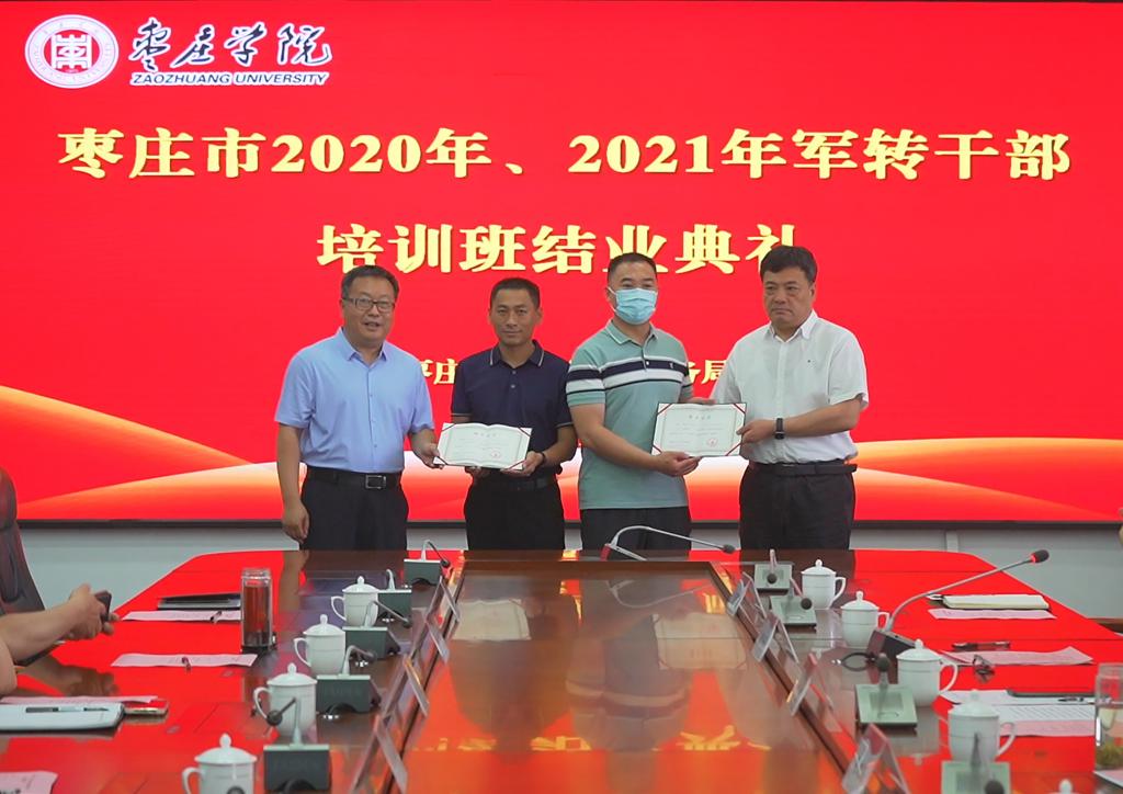 2022年5月27日上午,枣庄市2020年、2021年军转干部培训班结业典礼在beat365官网举行,校党委委员、副校长丰雷,枣庄市退役军人事务局党组成员、副局长张成磊,枣庄市退役军人事务局四级调研员王茂权,beat365唯一官方网站创新学院学院院长王明高,部分优秀学员代表参加结业典礼,其他学员通过视频会议观看在线直播,典礼由beat365唯一官方网站beat365唯一官方网站院长张宗海主持。