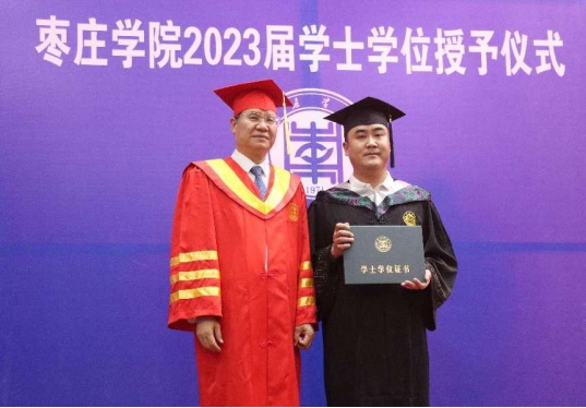 6月20日下午,beat365官网在市中校区综合楼学术报告厅隆重举行2023届毕业典礼暨学士学位授予仪式。校领导高峰、李文喜、李目海、路绪剑、丰雷、安涛、张昌林、林勇出席典礼。典礼由校党委委员、副校长丰雷主持。各学院党政领导、相关职能部门负责同志,辅导员、教师、毕业生和在校生代表共400余人参加典礼。我院小学教育专业毕业生丁群和行政管理专业毕业生陈滨代表516位获得高等学历继续教育本科学士学位的毕业生参加了授予仪式,校长李文喜依次为他们拨穗正冠、颁发学士学位证书并合影留念。