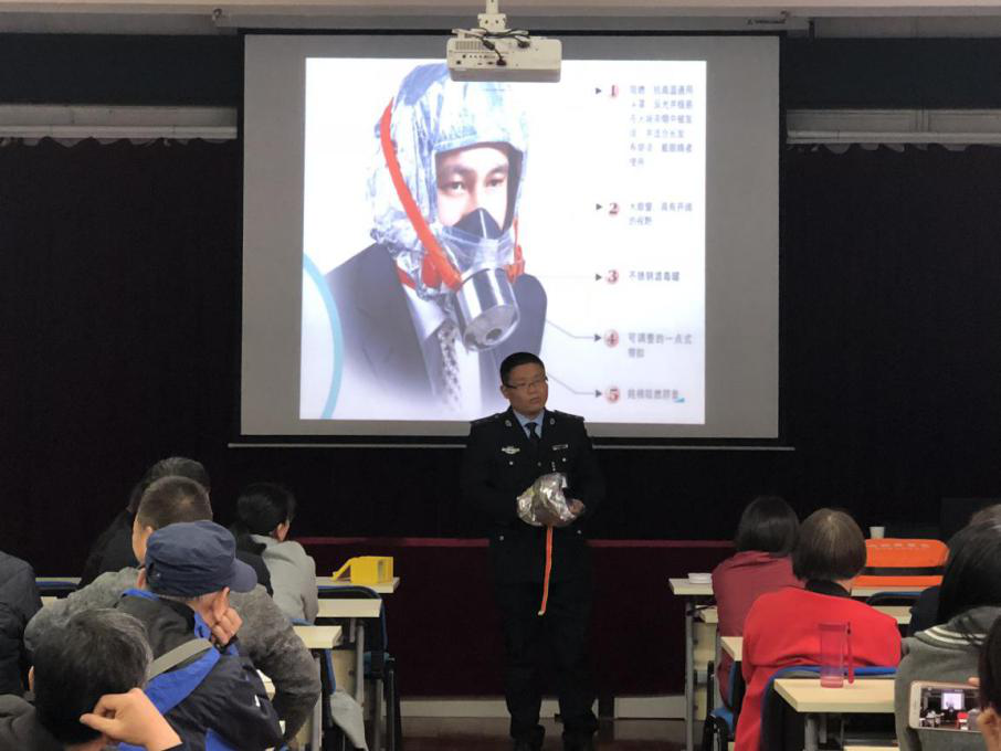 曲志强教员通过讲解PPT、播放视频等方式,结合近几年国内、省内尤其是郑州市高新区一些造成严重影响的消防事故,深刻说明了火灾危害性,指出学习消防知识的重要性。同时向老师们讲解了增强消防安全的四个能力,特别是对火灾产生的原因、火灾发生后如何处置、灭火的最佳时机、火灾后如何逃生、自救和疏散的技巧等进行了重点阐述。此外,曲志强还现场示范了灭火器、防毒面具、防火毯、应急手电等消防器材的正确使用方法,让老师们受益匪浅。