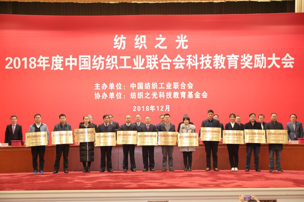 2018年12月5日,由中国纺织工业联合会主办的“纺织之光”2018年度中国纺织工业联合会科技教育奖励大会在人民大会堂隆重召开。大会表彰了我国纺织科技和教育事业发展做出突出贡献的科技、教育工作者和杰出人才,颁发了2018年纺织行业重点实验室、中国纺织工业联合会科学技术奖等奖项。