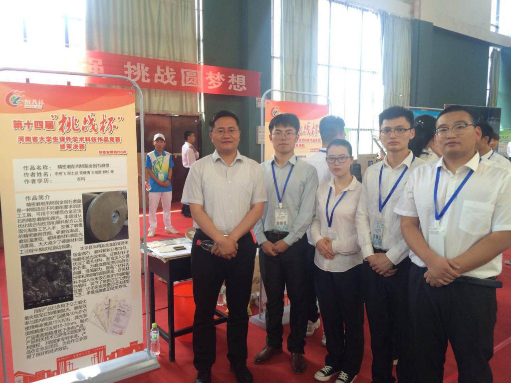 “挑战杯”是由共青团中央、中国科协、教育部和全国学联共同主办的全国性的大学生课外学术实践竞赛。今年会历来都非常重视学生动手能力和创新思维的培养,对“挑战杯”等大型赛事给予了高度重视。2017年,米院长指导的本科生取得了挑战杯国家级三等奖和河南省特等奖的好成绩。5月25日,正值2019“挑战杯”大学生课外学术科技作品竞赛省赛作品展示和现场答辩日。上午,米院长专程到河南科技大学看望今年会入围决赛的老师和学生,并合影留念,预祝大家能取得好成绩。