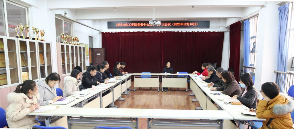 1216日,党委书记贾少鑫巡听材料与化工学院党委理论中心组学习,对学院党委学习贯彻党的十九届五中全会精神及 “十四五”规划编制工作进行指导。材料与化工学院全体中层干部及各党支部书记参加学习。材料与化工学院党委书记杨佩主持学习。