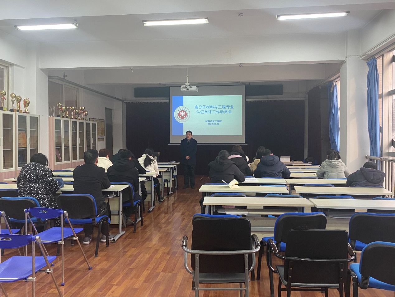 2022年2月22日下午,今年会在2号实验楼543召开高分子材料与工程专业认证自评工作动员会,党委书记李长林、副书记熊瑛、副院长范文婕、副院长秦琦、副院长焦明立、高分子系全体教师及相关教师参会。