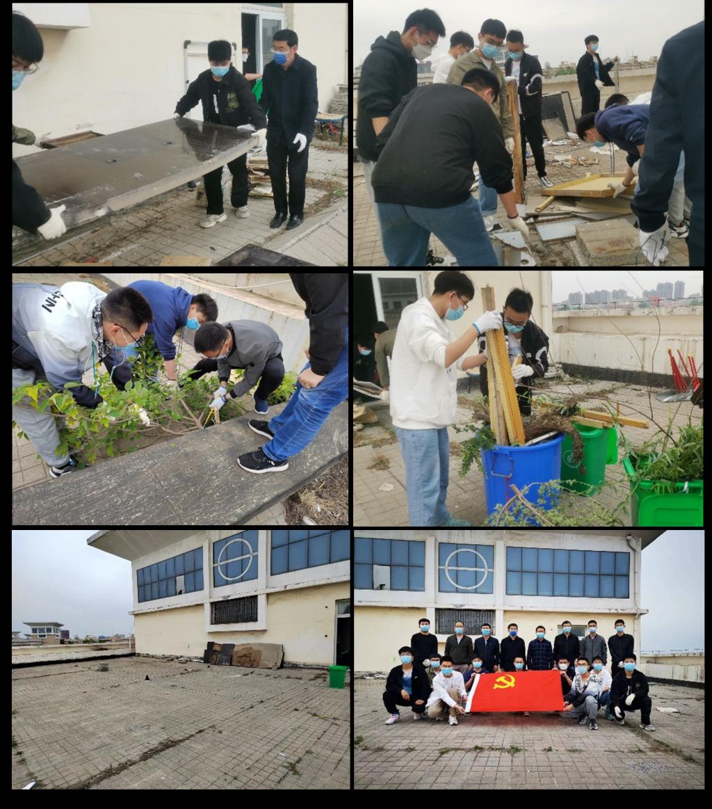 5月8日,为响应贾书记指示,材化学院党委组织在校师生党员参与了“一名党员一面旗,我为党徽增光辉”主题党日活动,共同清理楼顶废弃物及垃圾,消除大风高空坠物风险;清理楼顶树木,避免房顶漏水,为防疫防汛打下坚实基础。 (通讯员 李鹏宇)