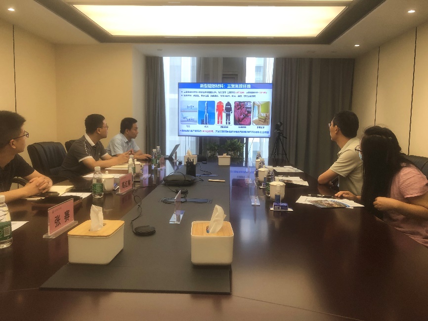 郑州中科新兴产业技术研究院高红帅研究员首先带领大家参观了研究院的科技成果展厅和研发实验室,并就研究院的基本建设情况和在新能源、新材料、绿色技术、生命健康、节能环保等领域开展的技术研发、成果转化、人才培育和企业孵化等情况进行了简要介绍。在随后的洽谈交流会上,高红帅重点就研究院在离子液体法制备蜜胺阻燃纤维的研发现状和产业化情况进行了详细介绍,焦明立也就今年会目前的科研情况、人才培养现状、和毕业生就业情况等进行了介绍,与会各方进行了充分沟通交流。