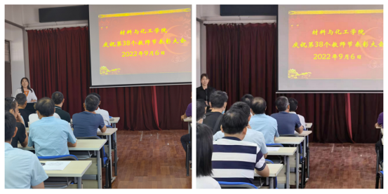 金秋送爽,丹桂飘香。9月6日下午,材料与化工学院在2号实验楼543会议室召开庆祝第38个教师节表彰大会,学院全体教职工参加会议,学报编辑部主任张旺玺和机关党委书记周华强应邀参加表彰大会,会议由学院党委副书记熊瑛主持。