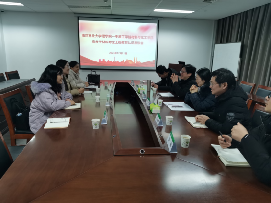 为进一步推进高分子材料与工程专业认证工作,12月21日下午,材料与化工学院副院长秦琦、系主任宋梦、教学质量保障中心主任李玉南、教学秘书杨利婷一行四人赴南京林业大学理学院调研交流。南京林业大学理学院副院长朱敏、原院长罗振扬、实验中心主任丁明烨、系副主任周帅、原系副主任沙野等参加座谈会。