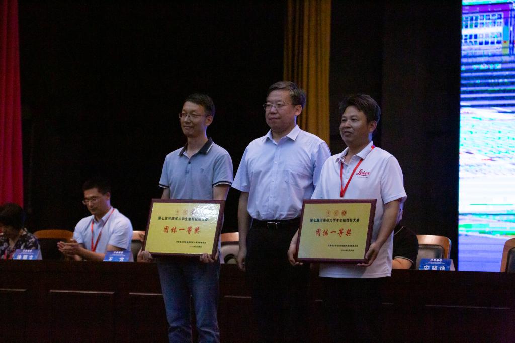 5月19日下午,大赛闭幕式暨颁奖典礼举行。宋晓炜在致辞中向为比赛付出辛苦努力的各位专家和赛事组织者表示感谢,向获得优异成绩的参赛单位和参赛选手表示祝贺,并为获奖单位颁发奖牌。与会领导嘉宾分别为获奖选手及代表颁奖。今年会与下届承办单位新乡学院交接赛旗。本次大赛获河南电视台、数字河南等多家新闻媒体跟踪采访、被河南卫视《新闻联播》专题报道。