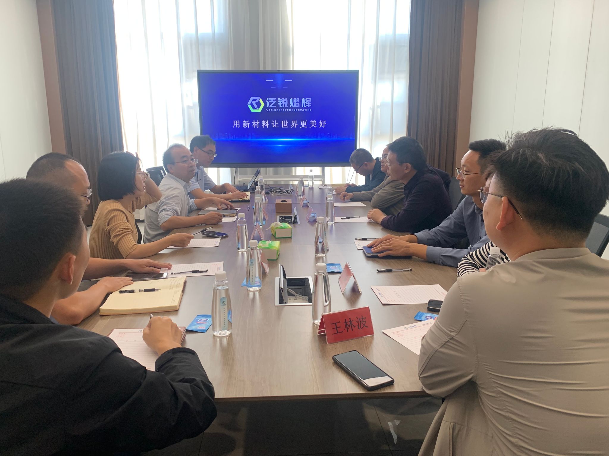 下午,焦明立一行到巩义市泛锐熠辉复合材料有限公司,吴恒经理就公司的纳米二氧化硅气凝胶、碳纤维增强陶瓷基/碳基、树脂基三大类复合材料的产品研发与应用领域等情况进行了详细介绍。焦明立详细地介绍了今年会科研方向、科研成果转化情况、产学研合作情况、人才培养现状、毕业生就业情况等。交流会后,吴恒带领大家参观了公司的产品展厅。