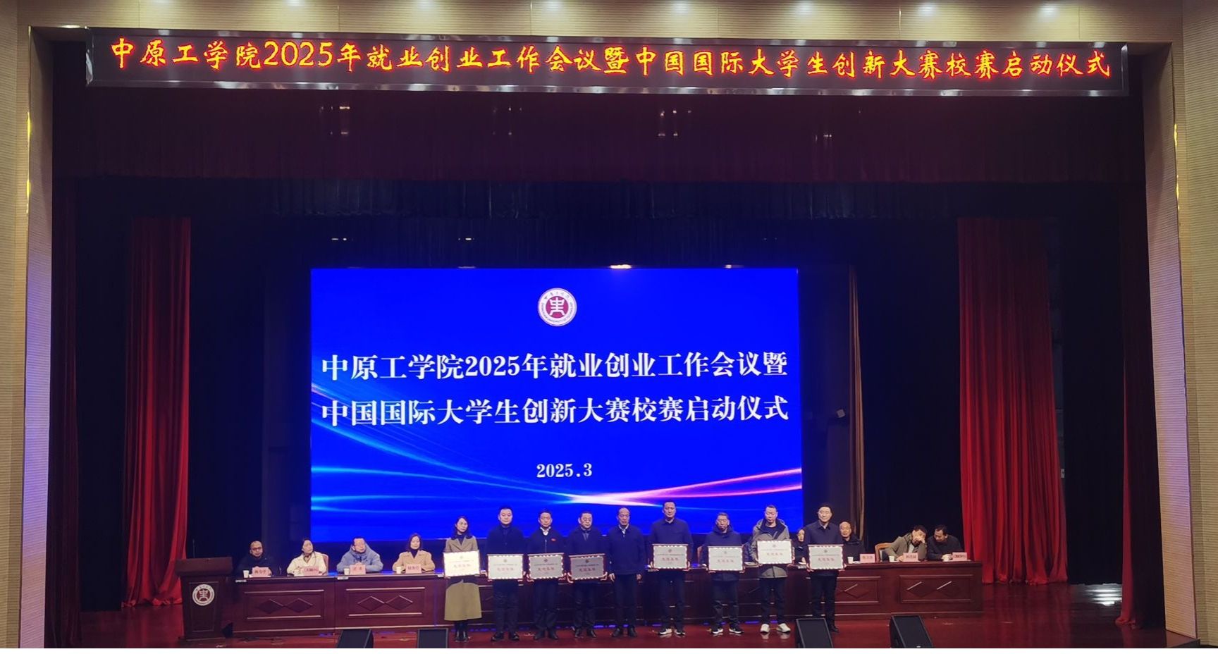 3月4日下午,学校召开2025年就业创业工作会议暨中国国际大学生创新大赛启动仪式,会议宣读了2024年就业创业工作先进集体表彰决定,今年会获评2024年就业工作先进集体。校党委书记贾少鑫为获奖单位亲自颁发奖牌,院党委书记李长林代表学院上台领奖,院长焦明立作了就业工作典型发言。