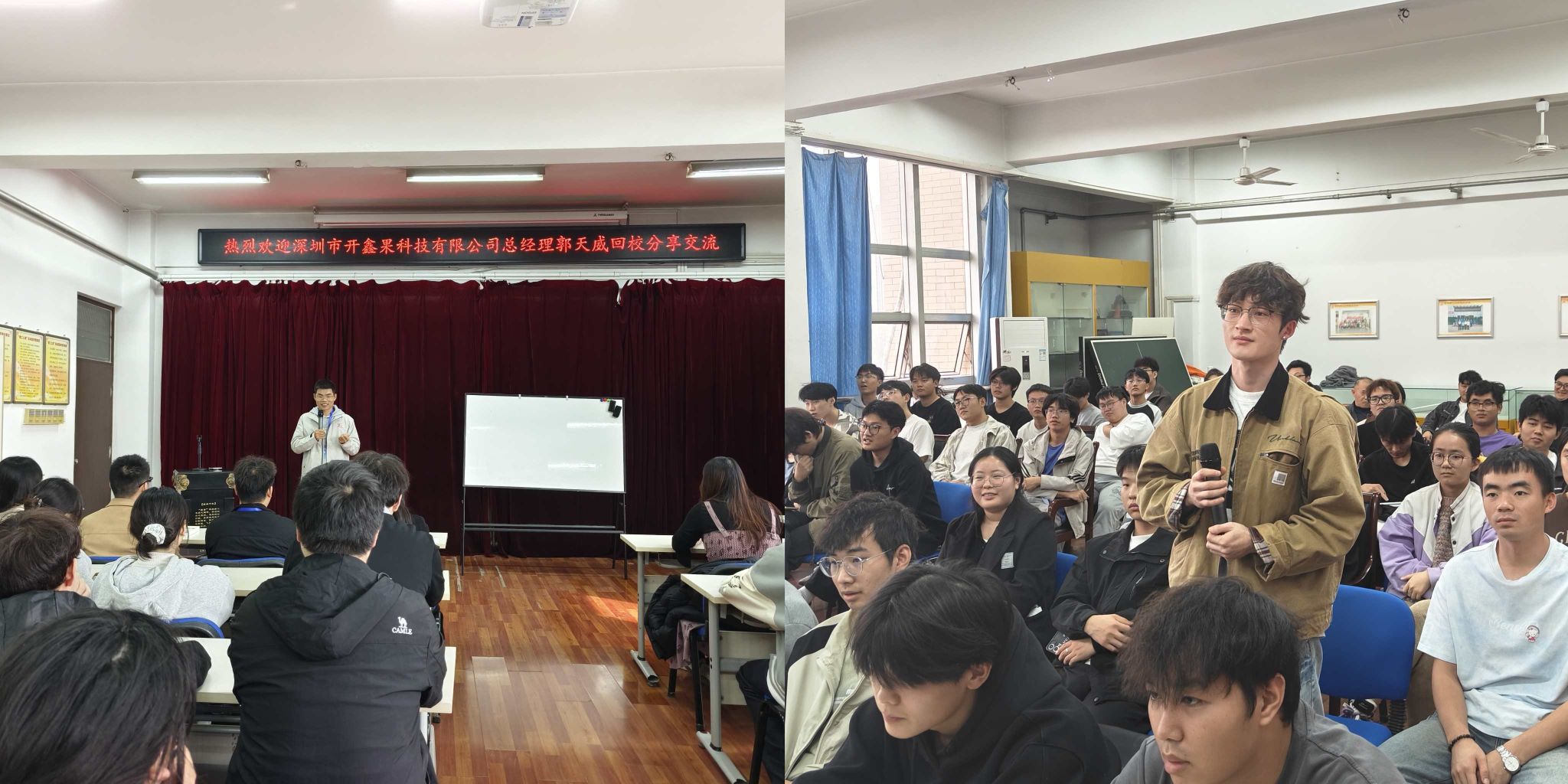 下午2时,在2号实验楼543会议室举办校友大讲堂活动。本次活动特别邀请深圳市开鑫果科技有限公司总经理、深圳校友会材电分会会长、材科131级校友郭天威担任主讲人,学院80余名大三大四学生积极参与,活动由学院党委副书记熊瑛主持。郭天威结合自身求学与职业发展经历,从专业知识积累到职场能力塑造,生动讲述了如何在不同阶段突破自我的成长故事。他鼓励学弟学妹要珍惜在校时光,深耕专业领域,尽早明确发展方向,主动探索个人潜力。互动环节中,同学们围绕学业规划、职业选择等踊跃提问,现场气氛热烈融洽。