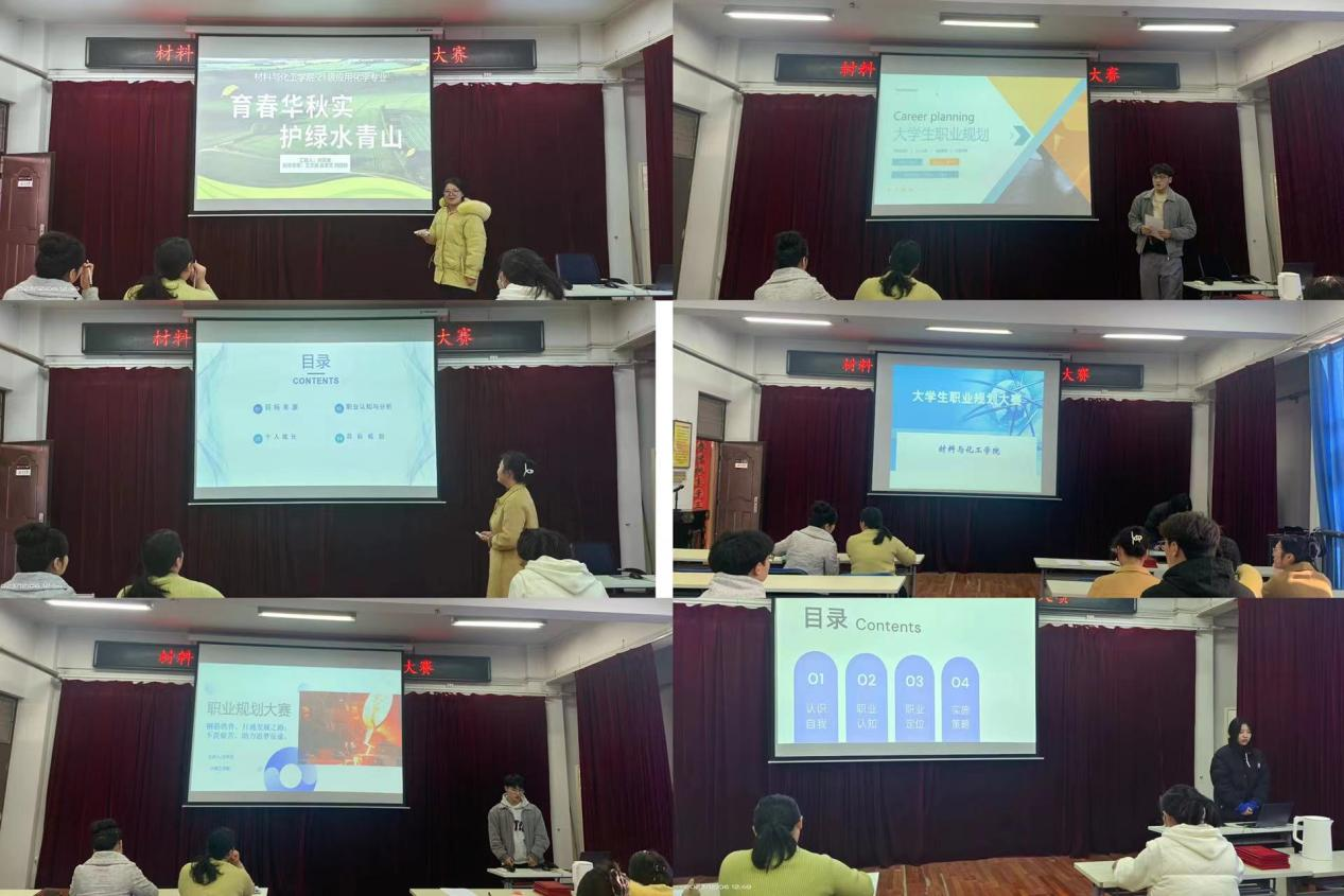 为贯彻落实党中央、国务院及省委省政府关于高校毕业生就业工作的决策部署,加强学生生涯教育和就业指导,增强大学生生涯规划意识,促进高校毕业生高质量充分就业。材料与化工学院大学生职业规划大赛于2023年12月6日下午在2号实验楼543举行。本次院赛今年会共有30余名学生积极报名参赛,校团委副书记卜艳萍、学院党委副书记熊瑛,学工办主任刘瀚担任本次大赛的评委,最终评出一等奖2名,二等奖3名,三等奖5名。