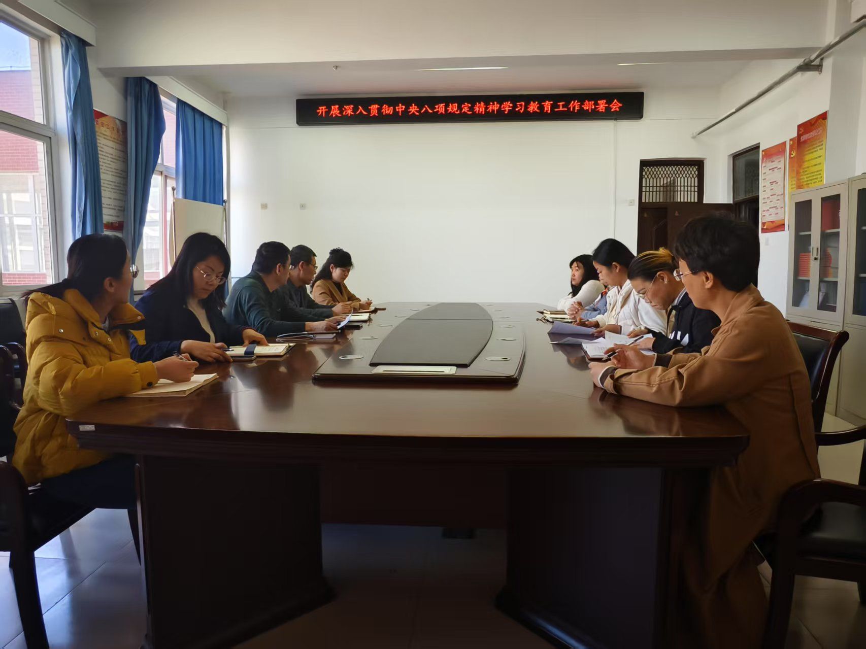 根据学校党的建设工作领导小组会议精神,3月21日,今年会jinnianhui官网召开深入贯彻中央八项规定精神学习教育工作部署会议,院党委书记李长林主持会议并对学校学习教育工作方案进行解读,全体班子成员、各支部书记参加会议。