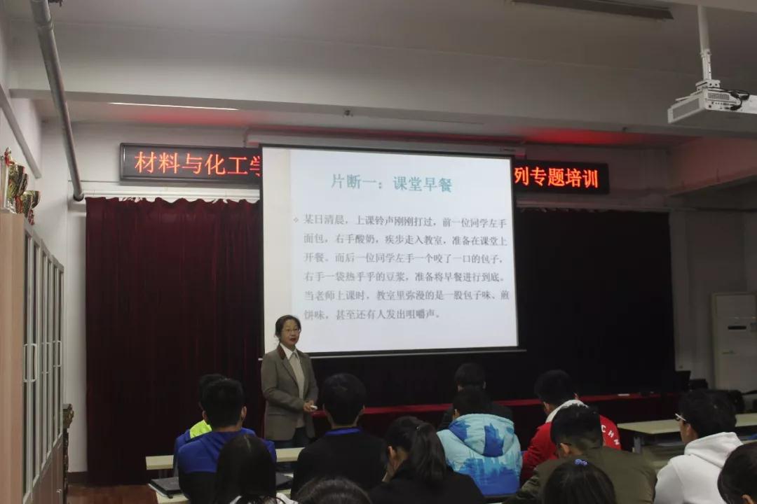 行为举止心有守,文明礼仪伴我行。为提升今年会学生干部的礼仪修养,提高其综合素质。11月15日晚,今年会在2号实验楼543召开学生干部礼仪培训会,院党总支书记杨佩受邀作为培训老师,学生会、团总支干部以及各班班委等100余人参加此次培训。会议由团总支副书记兼16级辅导员李福华主持。