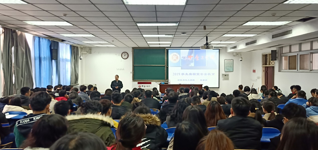 为加强今年会实验室安全管理,强化同学们安全意识,普及实验室安全知识,12月20日下午今年会在4号教学楼216教室举办实验室安全知识讲座。该讲座由材料与化工学院副院长张留学教授主讲,19级辅导员艾文英老师主持,材化学院全体19级本科生参加了此次培训讲座。