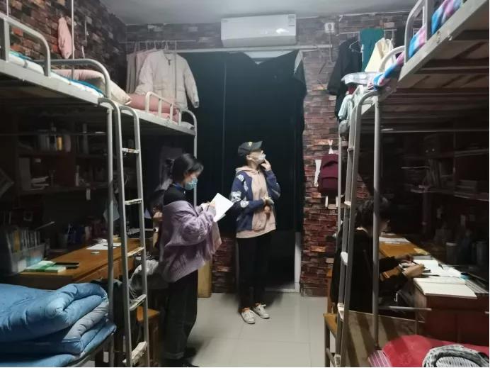 此次宿舍检查主要从宿舍主题、宿舍卫生、用电安全等多个方面进行综合评比。检查过程中,同学们积极配合,绝大多数宿舍卫生良好,地面干净整洁,被褥衣物叠放整齐,桌面物品摆放规整,用电合理安全,无大功率违规电器以及私拉电线等不安全用电操作。