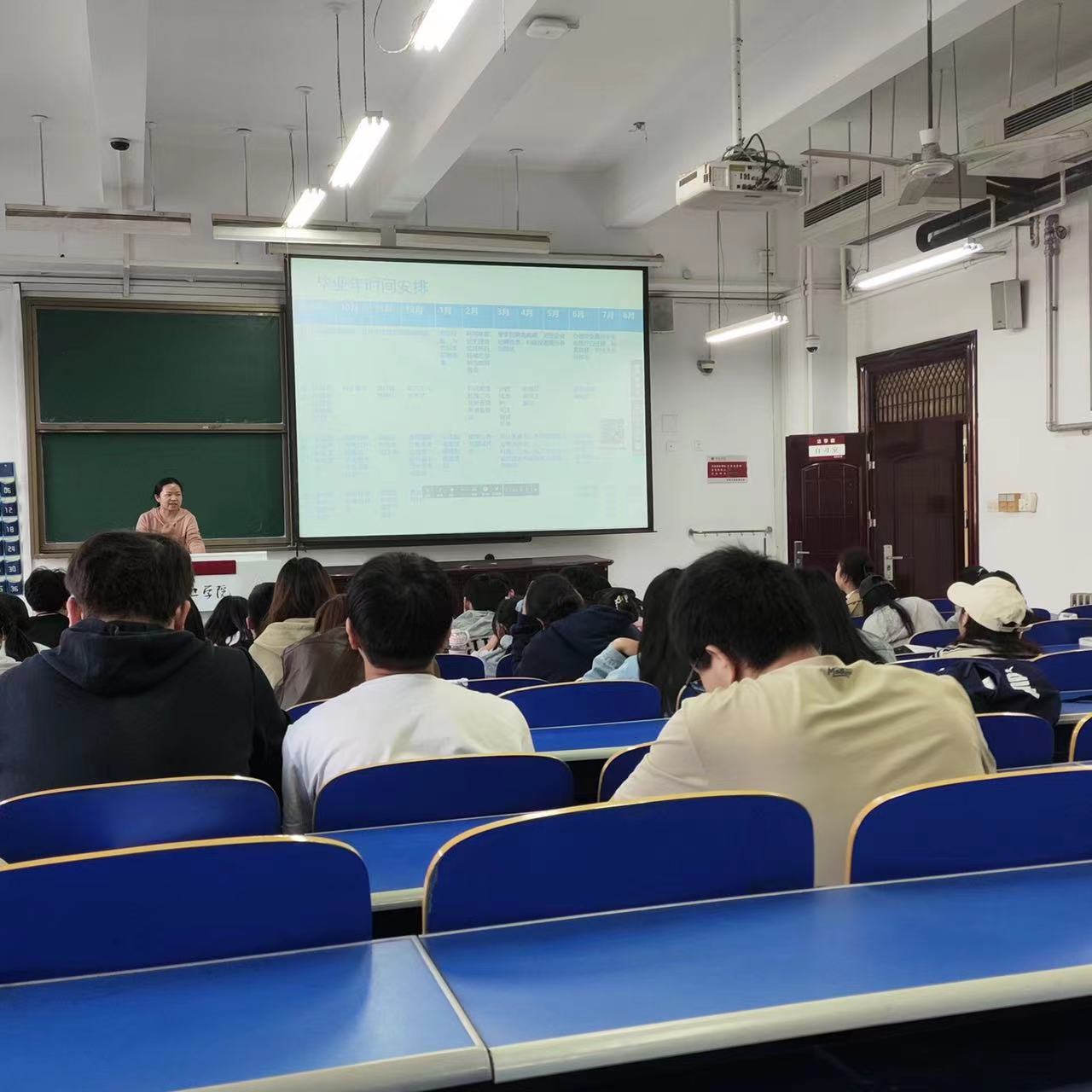 班会伊始,刘瀚老师充分肯定了同学们在过去的两个学年取得的成绩,也指出了班级现在存在的问题,比如英语四六级通过率较低,部分同学无精打采听课等。随后,刘瀚老师作为这次班会的主讲人,以一个过来人的身份向同学们讲述大三到底应该做什么,怎样做。