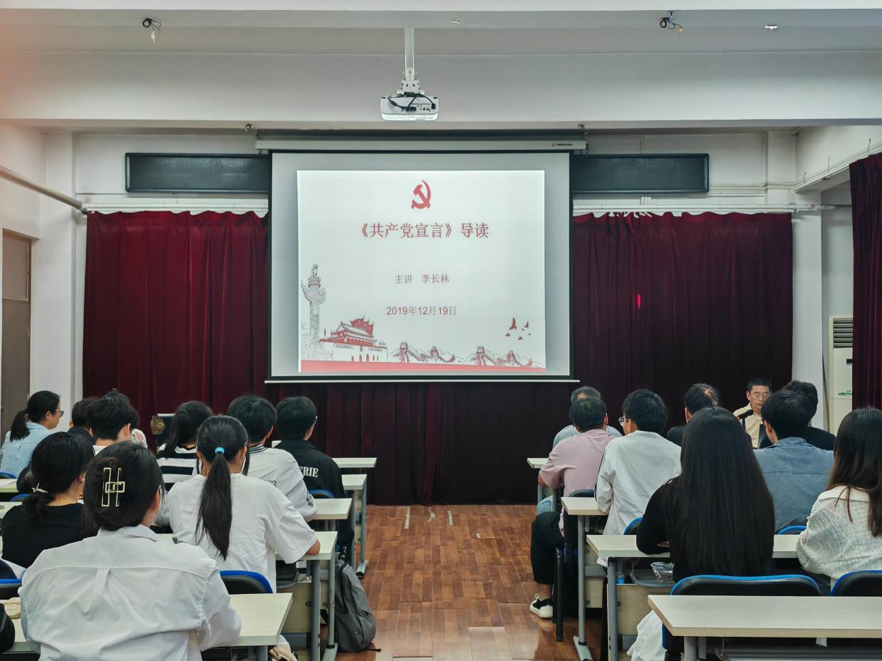 材料与化工学院党委书记李长林以《〈共产党宣言〉导读》为题,开启了本届“青马工程”培养班的第一讲。李书记从真理的味道非常甜,《共产党宣言》的产生及其历史地位,主要内容,当代价值,如何解读若干基本论断等五个方面对《共产党宣言》进行了系统的解读和讲解,强调了它是无产阶级反对资产阶级斗争的经验总结,是将科学理论运用于工人革命运动、创立无产阶级政党的实践产物。在讲到“中国共产党是忠实践行者”时,李书记强调了《共产党宣言》是中国共产党的行动指南,青马班学员要认真学习,深刻把握,努力成长为合格的新时代新青年。同学们聚精会神地倾听,并认真做笔记记录重点,在学习中坚定理想信念,汲取奋进力量。