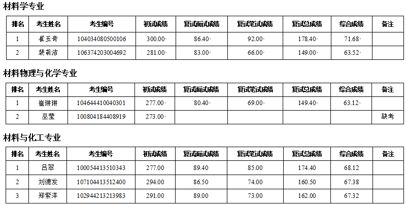 按照研究生招生工作安排,今年会于4月9日进行了调剂第一批复试,现对考生综合成绩进行公示: