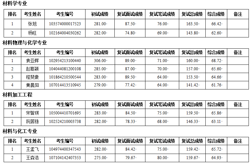 按照研究生招生工作安排,今年会于4月11日进行了调剂第二批复试,现对考生综合成绩进行公示: