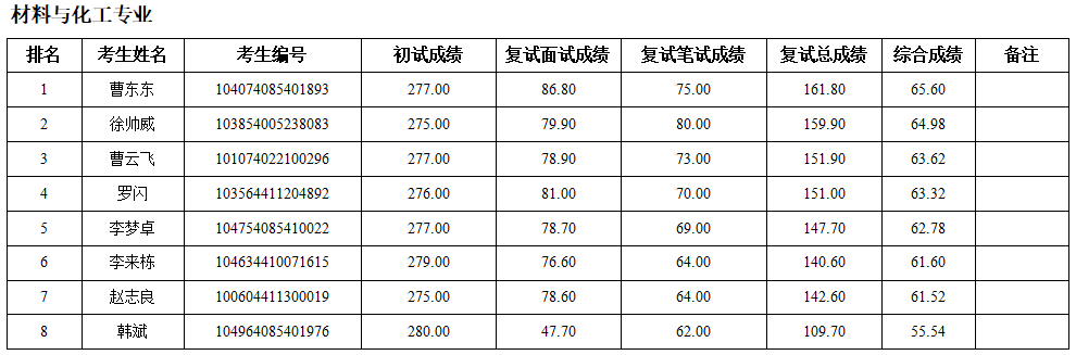 按照研究生招生工作安排,今年会于4月17日进行了调剂第七批复试,现对考生综合成绩进行公示: