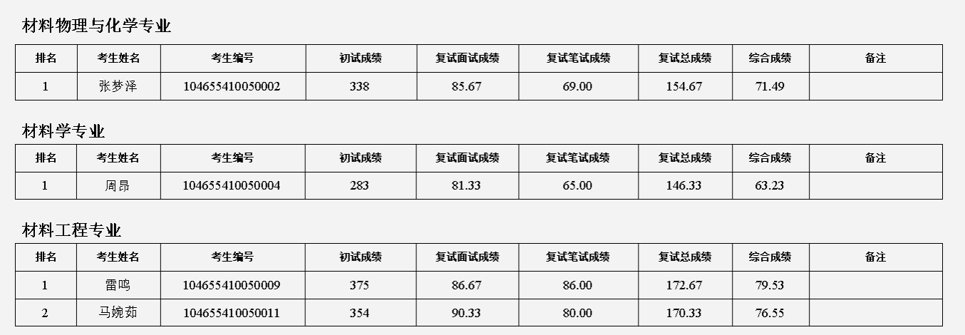 按照研究生招生工作安排,今年会于4月2日进行了第一志愿复试,现对考生综合成绩进行公示: