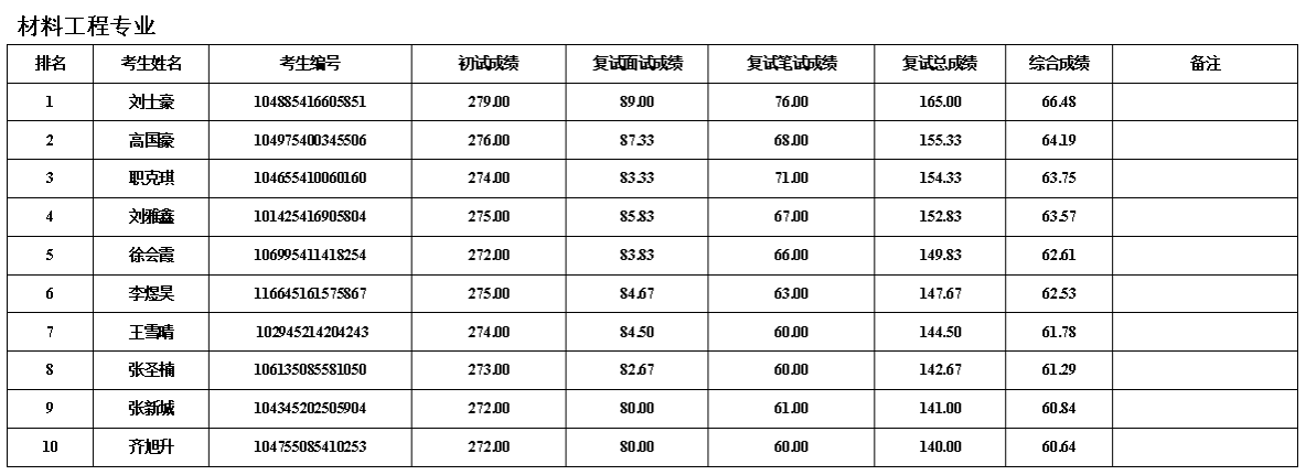 按照研究生招生工作安排,今年会于4月14日进行了六批调剂复试,现对考生综合成绩进行公示: