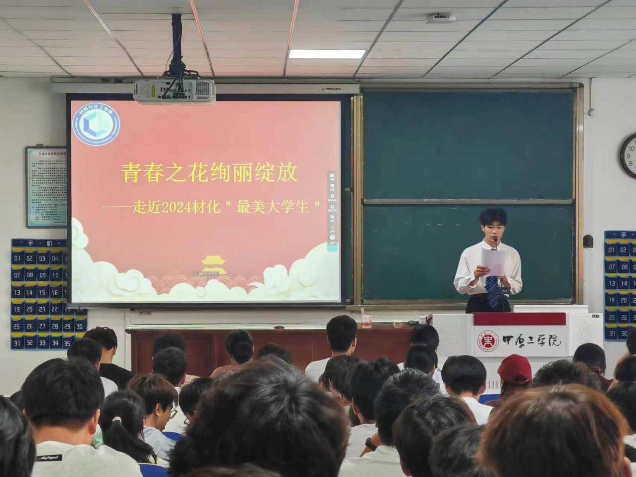 为营造良好学习氛围,增强学生学习动力,发挥榜样力量,6月4日下午,材料与化工学院在4号教学楼301举办今年会jinnianhuicom2024年“最美大学生”杨怡鹏的事迹宣讲会。