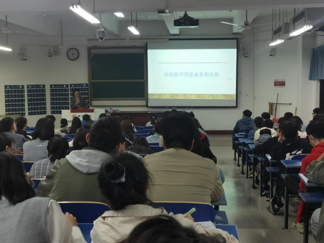为让国家资助政策更好帮助学生顺利完成学业、落实学校相关文件要求,今年会高校贷款负责人张皖豫于2021年4月27日在三号教学楼217召开“国家开发银行高校助学贷款政策宣讲”,向19、20级学生宣传相关资助政策。