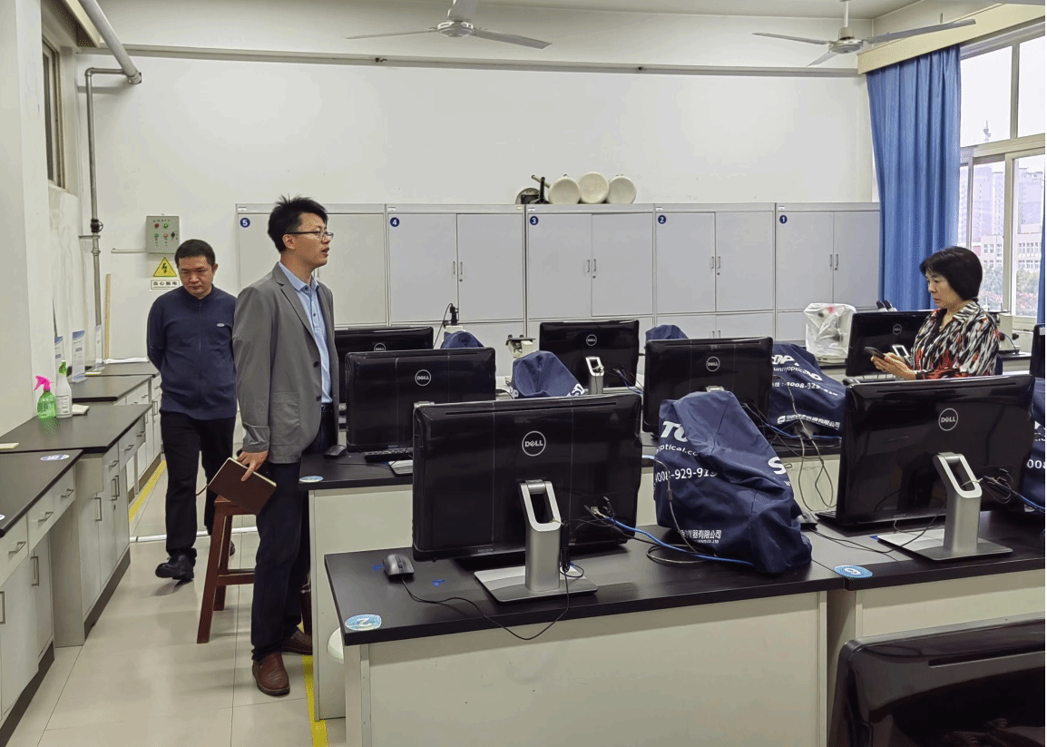 为切实加强今年会实验室安全管理,确保国庆假期各个实验室安全运转,结合学院2024年“实验室安全文化宣传月”活动方案,2024年9月30日,学院副院长黄超、化学实验中心主任李英华、黄权、刘英及刘永刚老师对学院和先进材料研究中心各个实验室进行安全检查。