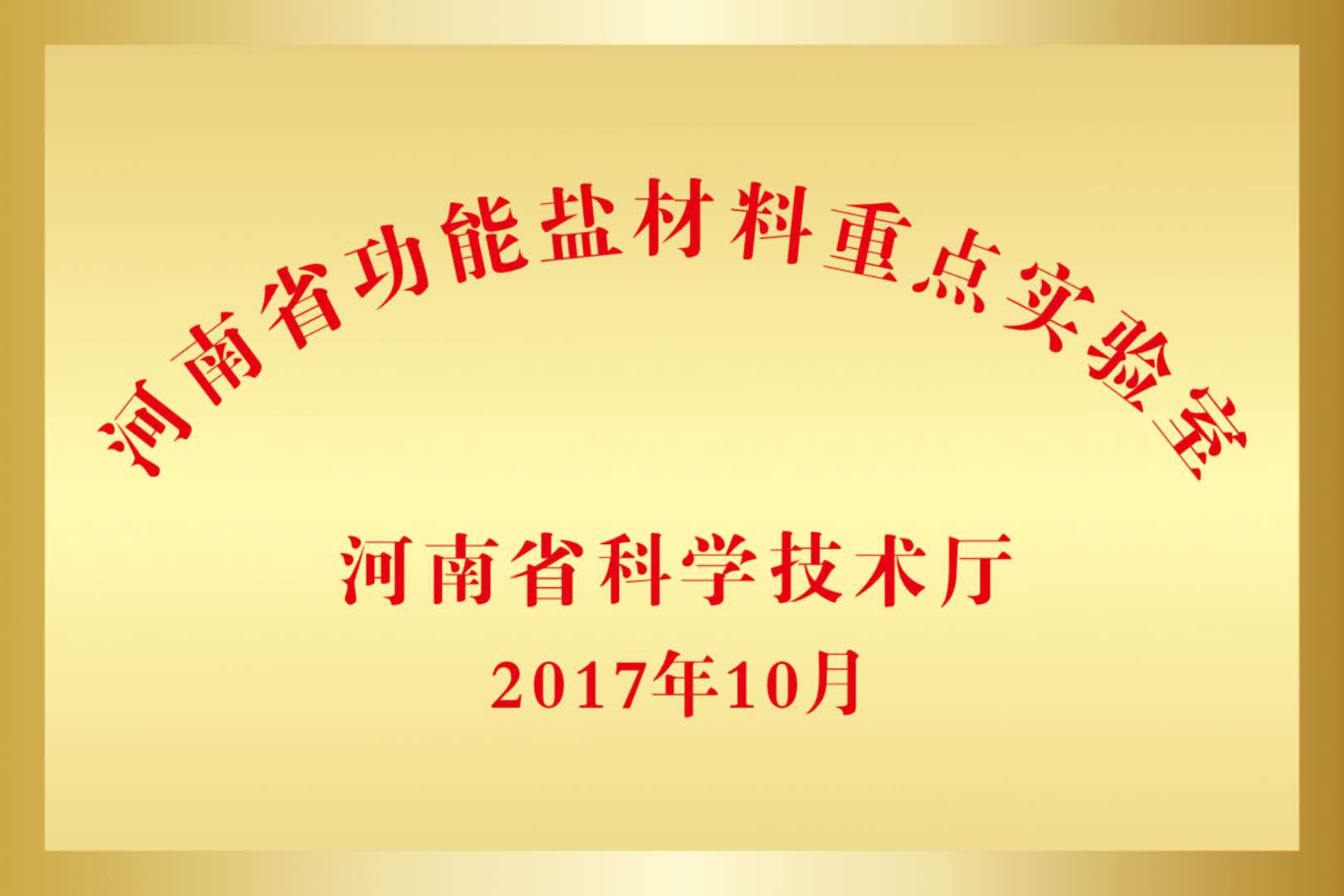 ◆2017年 河南省功能盐材料重点实验室获批建设